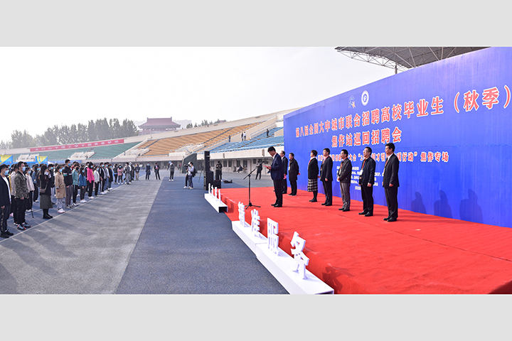 10月17日,第八届全国大中城市联合招聘高校毕业生焦作站巡回招聘会暨河南理工大学2020年秋季双选会、中国·河南招才引智创新发展大会“2020招才引智专项行动”焦作专场、河南毕业生就业市场焦作分市场秋季双选会在我校东体育场举行。全国人才流动中心党委副书记宋小燕、就业服务处处长李红义,河南省人才交流中心流动党委书记石敦,焦作市副市长薛志杰、市人社局局长王东林、副局长申纪平、市人才交流中心主任原军营,校长杨小林等出席活动。