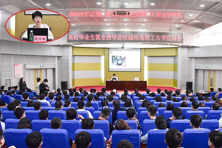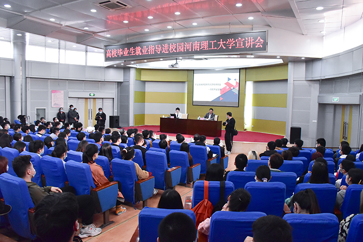 10月16日,为提升大学生就业创业能力,由人社部就业促进司和全国人才流动中心主办,河南理工大学、焦作人社局承办的“高校毕业生就业指导进校园”宣讲会在我校力行楼学术报告厅举行。全国人才流动中心主任王建华、党委副书记宋小燕、就业服务处处长李红义、处长助理单禹,河南省人力资源社会保障厅二级巡视员栗新刚、省人才交流中心主任冯以干、流动党委书记石敦,焦作市副市长薛志杰、焦作市人社局局长王东林、副局长申纪平,焦作市人才交流中心主任原军营,校党委书记邹友峰等出席,宣讲会由副校长赵同谦主持,国家级就业创业导师、北京睿特云网科技有限公司CEO张冰红授课。