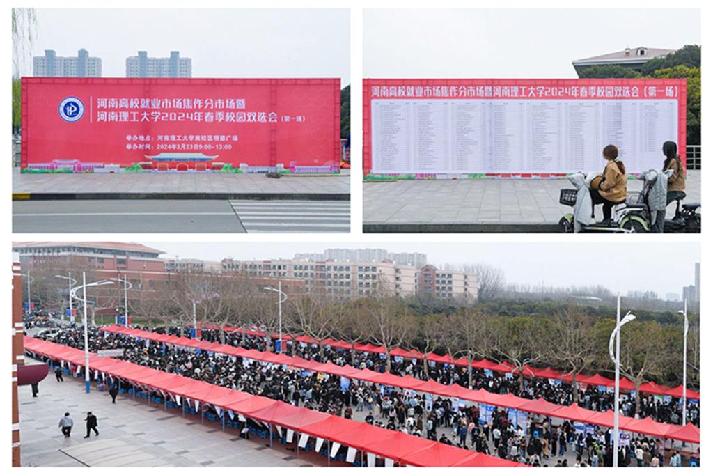 为贯彻落实全国两会精神,按照教育部 2024 届高校毕业生春季促就业攻坚行动和省委、省政府第一季度就业工作“开门红”决策部署,3月23日,我校于南校区明德广场成功举办了河南高校就业市场焦作分市场暨河南理工大2024年春季线下大型校园双选会(第一场)。校党委书记邹友峰、校长赵同谦、校党委副书记解伟等校领导到招聘现场考察指导工作。