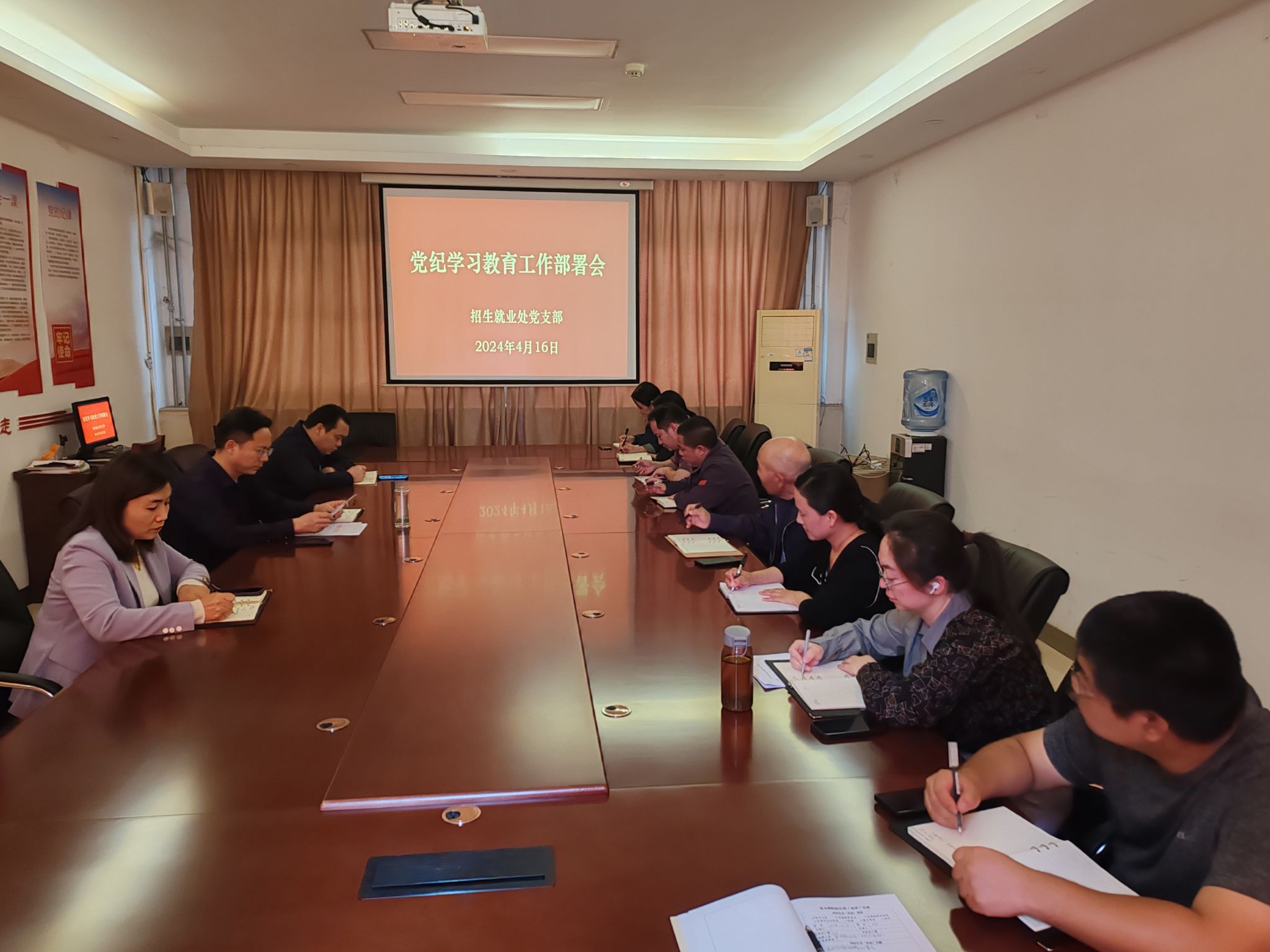 根据学校党委党纪学习教育工作专班通知要求,4月16日下午,招生就业处在大学生活动中心104室召开党纪学习教育工作部署会。会议由招生就业处处长张光胜主持,该处全体教职工参加会议。
