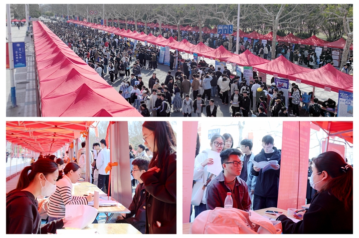 双选会现场气氛热烈,各用人单位招聘展位上人流涌动、成果显著。参加本次招聘活动的单位共有260余家,涵盖机械制造、电子信息、能源化工、教育医疗等重点行业,汇聚了包括中国电建集团、河南省能源集团、中航光电集团、中煤一局集团等为代表的众多行业领军企业。各企事业单位共提供岗位超8000个,包括研发、技术、设计、销售、管理、财务等岗位,为不同专业背景和学历层次的同学提供了多样化、高质量的就业选择。据会务组统计,到场求职或咨询的学生达5000余人次,初步达成就业意向近800人。此外,活动期间,学校还与南京市六合区举行了校地人才战略合作签约及交流座谈会,通过搭建校地对接平台,为毕业生提供了更多优质岗位资源。