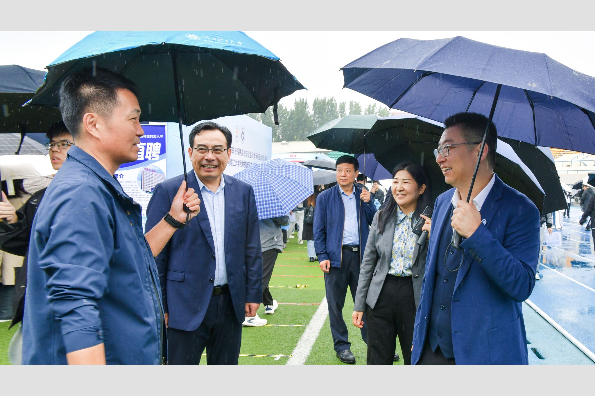 为深入贯彻落实党中央、国务院关于促进高校毕业生就业创业工作的决策部署,搭建用人单位与毕业生精准对接平台,9月27日,“职引未来—2025年全国城市联合招聘高校毕业生秋季专场活动(焦作站)暨河南理工大学秋季校园双选会”在我校南校区东区体育场举办。校领导赵同谦、丁亚红实地察看招聘情况,与用人单位、求职学生深入交流,指导校园就业工作。