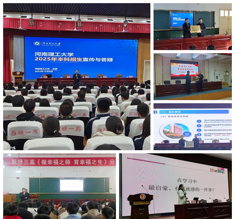 西峡第一高级中学的高志远校长、宋晓波副校长,新野第一高级中学的王飞副校长,以及新野第三高级中学的樊晓军校长、高占朝副校长分别出席了宣讲会。在每场活动的尾声,各高中的校领导均对我校的招生宣传工作表示了感谢,并进行了总结发言,强调了与河南理工大学合作的重要性,并对河南理工大学的招生政策和教育质量给予了高度评价。
