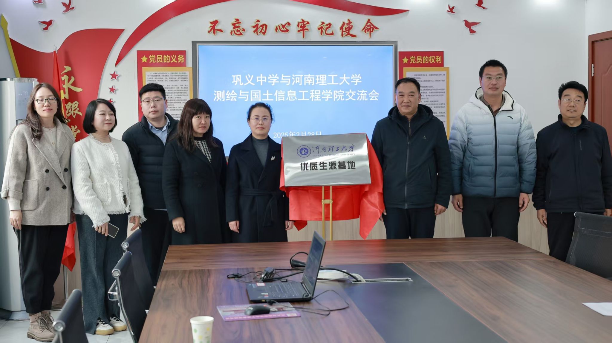 张红霞向三所高中校领导详细介绍了我校发展历程与办学特色,以及测绘学院师资力量、“双一流”创建丰硕成果和近年来的社会贡献,希望双方以“优质生源基地”挂牌为契机,进一步加强互文动,深化合作,积极开展研学活动,增进了解,吸引更多优秀学生报考河南理工大学。王雷霞和各系任课老师分别介绍了该院学生工作成果及近年来学生就业概况,以及学科建设、本科生培养和学生科创活动等情况。
