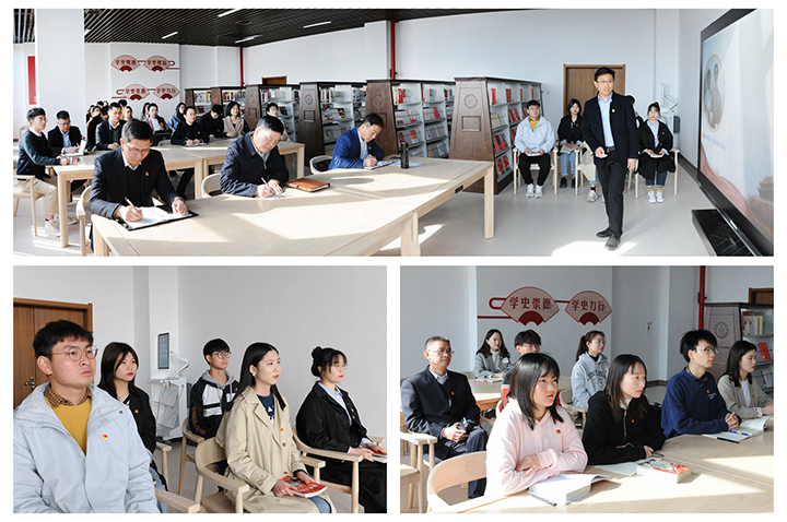 为深入推进党史学习教育,喜迎建党100周年,3月24日,学校党办支部、组织部支部与部分学生党员,在南校区第二图书馆党史图书主题阅览室联合开展了“共学党史、同守初心”主题党日活动。校党委书记邹友峰、校党委副书记石培哲参加党日活动。