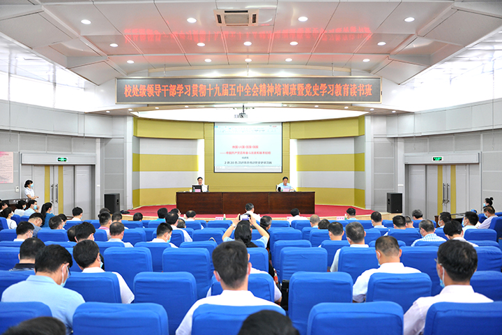 为全面学习贯彻党的十九届五中全会精神,推进党史学习教育深入开展,自4月份开始,学校党委在校处级干部范围内开展了学习贯彻党的十九届五中全会精神专题培训暨党史学习教育读书班系列活动。根据培训工作安排,6月15日,中国人民大学马克思主义学院何虎生教授应邀莅校,作党史学习教育专题培训报告。会议在力行楼学术报告厅举行,校领导邹友峰、石培哲、解伟、沈记全、朱建光出席。会议由校党委副书记石培哲主持。