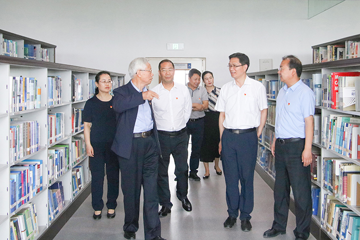 李金明回到理工校园,看到学校日新月异的变化、蒸蒸日上的景象,感到非常高兴和自豪。在第二图书馆,他先后参观了借阅室、自习室等,每到一处都认真听取工作人员的详细介绍,并对图书馆优雅的学习环境、先进的设施设备、科学的功能布局表示赞赏。“这个是老地质楼、老采煤楼,那个是老机电楼,还有老图书馆……”望着图书馆楼道里悬挂的一张北校区老照片,李金明一边看、一边动情地给大家讲解……仿佛自己又回到了那个曾经魂牵梦绕大学校园,这一幕,感染了在场的每一位师生。