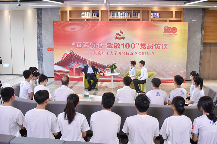 回望初心,不忘来路;致敬100,继续前行。在全国上下深入开展党史学习教育、喜迎建党百年华诞的重要时刻,近日,学校组织开展“回望初心、致敬100”党员访谈活动。首期访谈邀请知名校友李金明重返母校接受访谈。李金明围绕庆祝建党100周年、充分发挥榜样力量、引导青年学生追寻入党初心,在学校第二图书馆一楼东厅阅览室与能源学院、安全学院学生交流。校党委书记邹友峰、校长杨小林、副校长翟耀南出席。