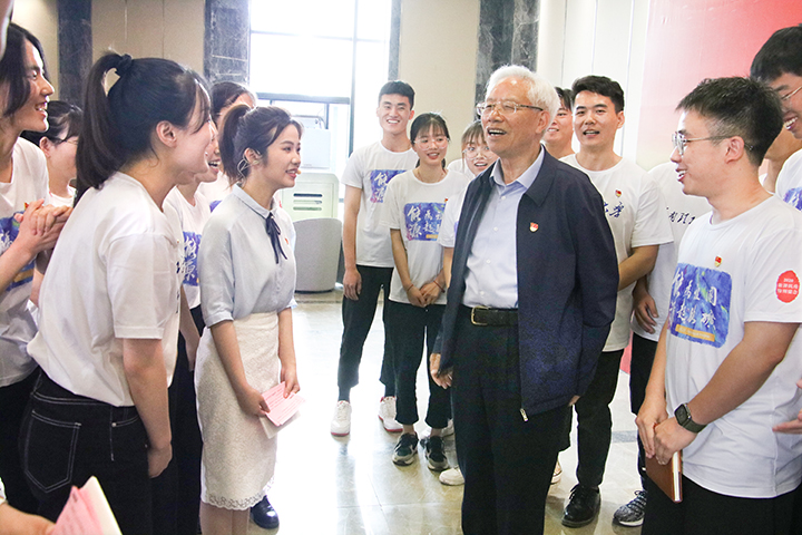 “受到学校邀请,来参加这样一个学习活动,感到很新鲜、很受教育,特别是见到这么多年轻人,跟大家在一起交流很高兴、很激动……”在访谈现场,李金明兴奋地说。他围绕自己的求学时光、入党过程、工作经历、国家发展、学校变化等内容,与在场师生展开深入交流。谈到国家的进步、学校的发展,他激情澎湃、自豪不已;谈到求学时光、工作经历,他语重心长、娓娓道来……不仅让大家充分感受到一位老学长坚定的理想信念、崇高的精神品质、刻苦的求学精神和朴素的工作作风,也感到了近年来国家的飞速发展、社会的全面进步和人民生活的持续改善。同时,他围绕“传承和弘扬‘红船精神’”“南水北调工程的重要意义”等主题,与同学们进行了亲切对话。