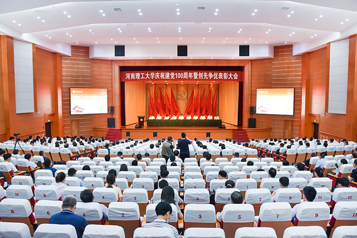 百年征程波澜壮阔,百年大党风华正茂。在喜迎中国共产党成立100周年之际,6月30日上午,学校庆祝建党100周年暨创先争优表彰大会在南校区明德楼音乐厅隆重召开。校领导邹友峰、杨小林、石培哲、解伟、陈自录、赵俊伟、翟耀南、沈记全、朱建光、郭相春出席会议并在主席台就坐。校党委副书记、校长杨小林主持会议。全体处级干部、组织员、各党委(党总支)党政办主任、获奖代表以及新党员代表和师生党员代表300余人参加会议。
