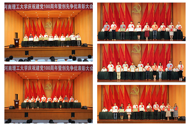 校党委副书记石培哲宣读了河南省委高校工委《关于表彰委管高校优秀共产党员、优秀党务工作者和先进基层党组织的决定》,校党委副书记解伟宣读了省委高校工委《关于公布首批全省高校省级样板党支部评审结果的通知》,校纪委书记陈自录宣读了学校《关于表彰2020年度先进党组织、优秀党务工作者、优秀共产党员和优秀特聘组织员的决定》,副校长赵俊伟宣读学校《关于表彰2020年度精神文明先进单位和先进个人的决定》,副校长翟耀南宣读学校《关于表彰保密工作先进单位和先进个人的决定》。伴随着欢快的乐曲声,校领导为获得先进单位、先进个人的代表颁奖,现场报以热烈的掌声。