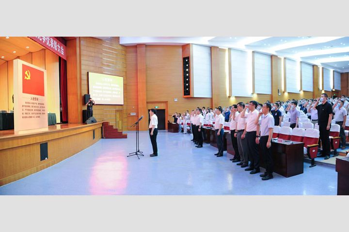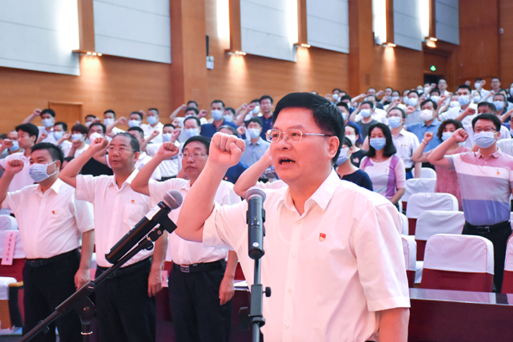 校党委书记邹友峰带领新党员入党宣誓、党员重温入党誓词