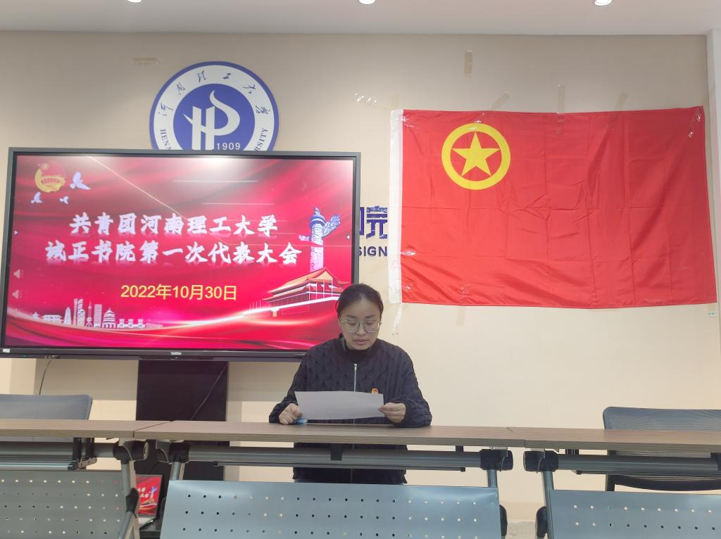 预备会议之后,本次团代会在嘹亮的团歌声中拉开帷幕。李旭升代表书院党委对此次团代会的召开表示热烈祝贺,向与会人员致以亲切问候,对书院共青团今后工作提出三点要求:一要立足书院实际,坚持为党育人、为国育才初心使命,以立德树人为根本任务;二要践行“厚德敬业、诚心正意;五育并举、全面发展”育人理念,切实加强青年团员的思想道德建设;三要努力提高综合素质,不断丰富“思想引领、以文化人、笃行向善”的文化内涵,努力开创诚正书院共青团工作的新局面。