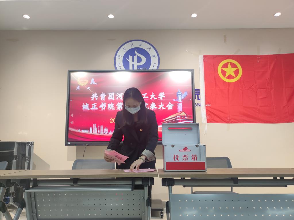 朱丹宣布了《共青团河南理工大学诚正书院第一次代表大会选举办法(草案)》,该草案经过与会代表举手表决并全票通过。同时,李志华宣布了第一届委员会候选人名单,与会代表表决无异议,采取无记名差额选举的方式进行投票选举。经过选举,朱丹、吴天怡、贾敬文、尹勃涵、牛童、黄暄宸、才佳音当选为共青团诚正书院委员会委员。