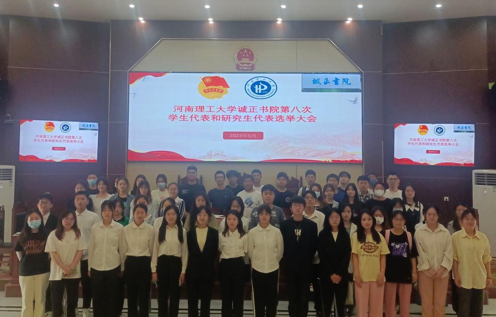 为切实保障青年学生的民主权利和合法权益,充分激发广大青年学生的主人翁意识,5月18日中午,诚正书院于北校区模拟法庭隆重召开河南理工大学第八次学生代表大会诚正书院学生代表选举大会。诚正书院团委负责人朱丹、各学生组织负责人以及各基层班级学生代表共80余人参加此次会议,会议由诚正书院学生会成员朱新宇主持。