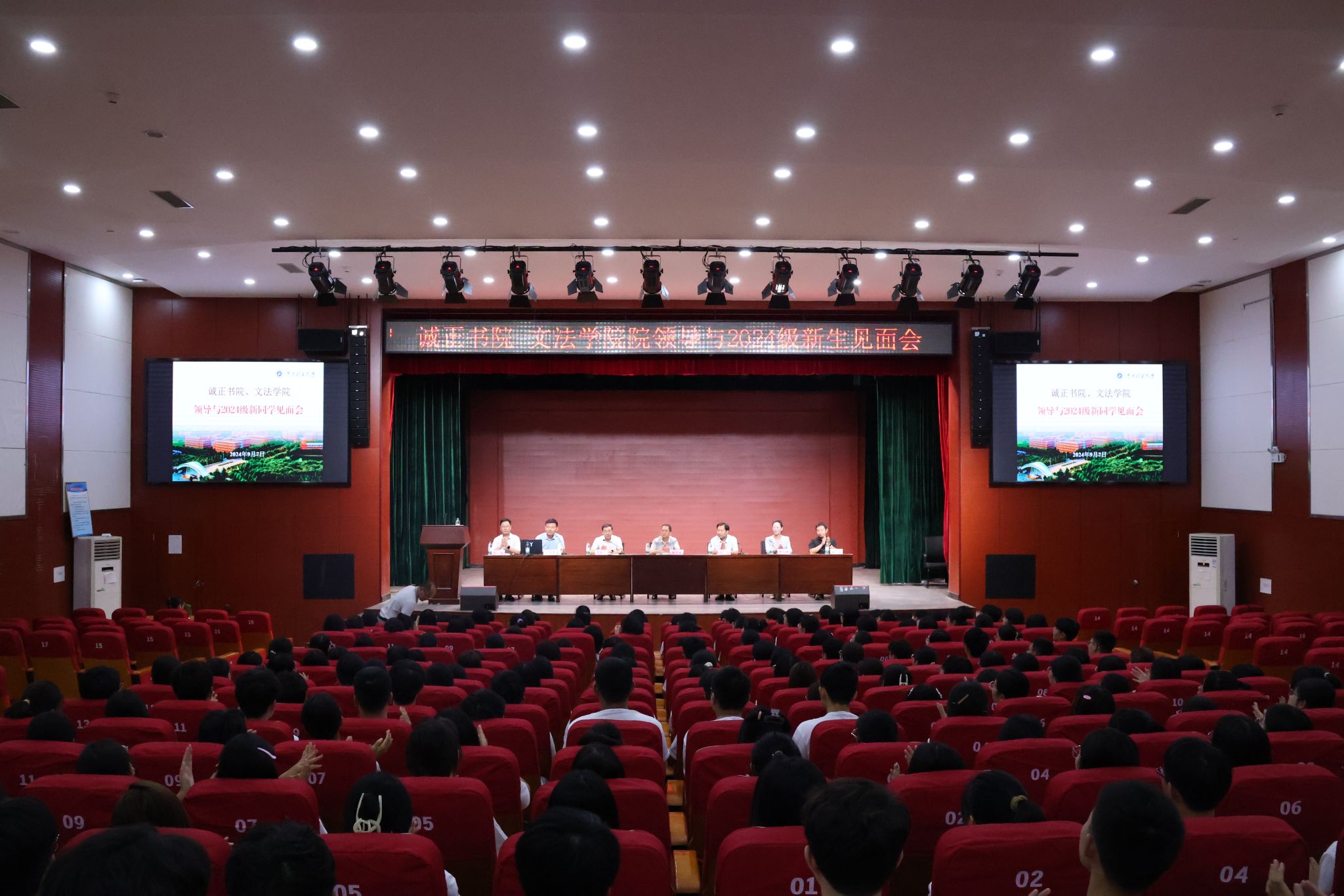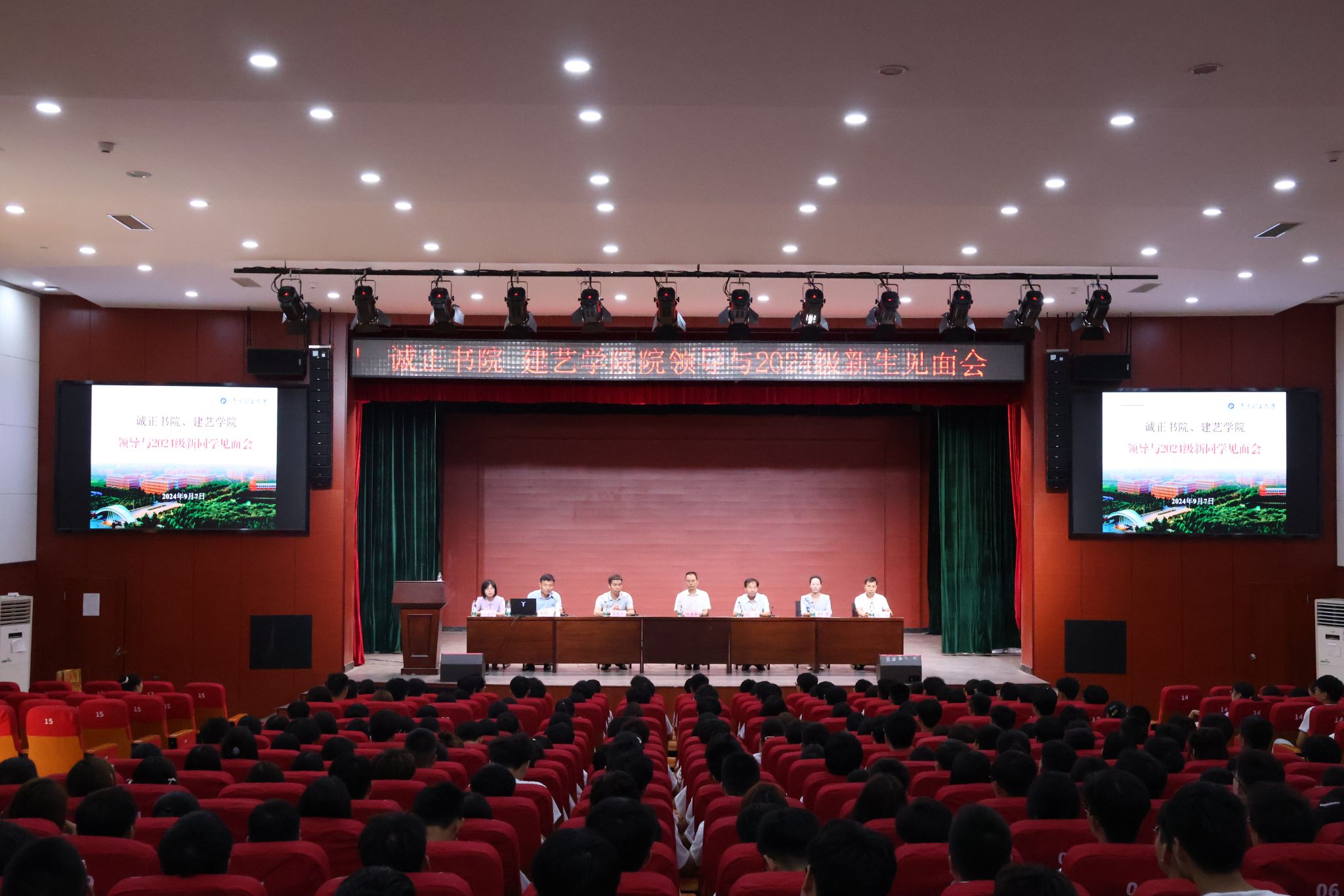 筑梦启程,青春飞扬。为加强2024级新生对诚正书院及专业学院的认知、明确自身定位、清楚发展方向、树立远大理想,9月6号上午,诚正书院联合文法学院、建艺学院在北校区小礼堂分两场举行了2024级新生见面会。诚正书院和专业学院的领导集体出席本次见面会,2024级新生辅导员及新生全体参加,会议由诚正书院党委副书记李旭升主持。