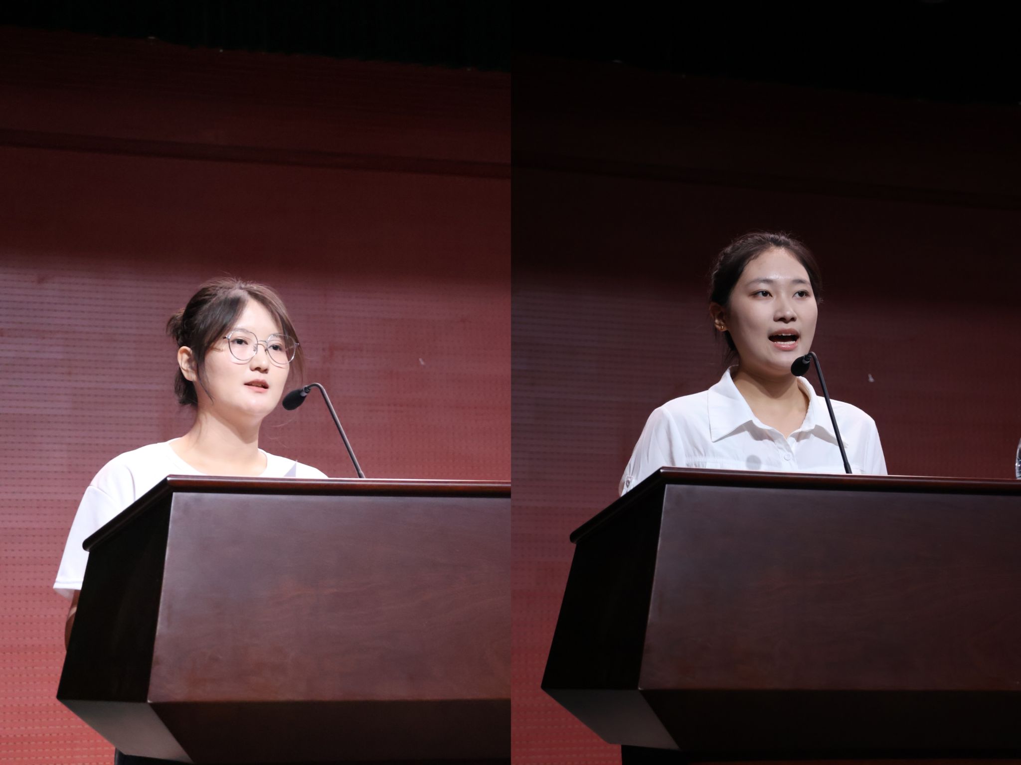会上,来自法学2401李莹莹、设计2403穆欣欣两位同学代表新生上台发言,她们号召新生要怀揣着对大学生活的憧憬,明晰大学前行的方向,脚踏实地,努力成长,不断进步,提升自己的综合素质,成为一名优秀的大学生。见面会在雄壮的校歌中进入了尾声。