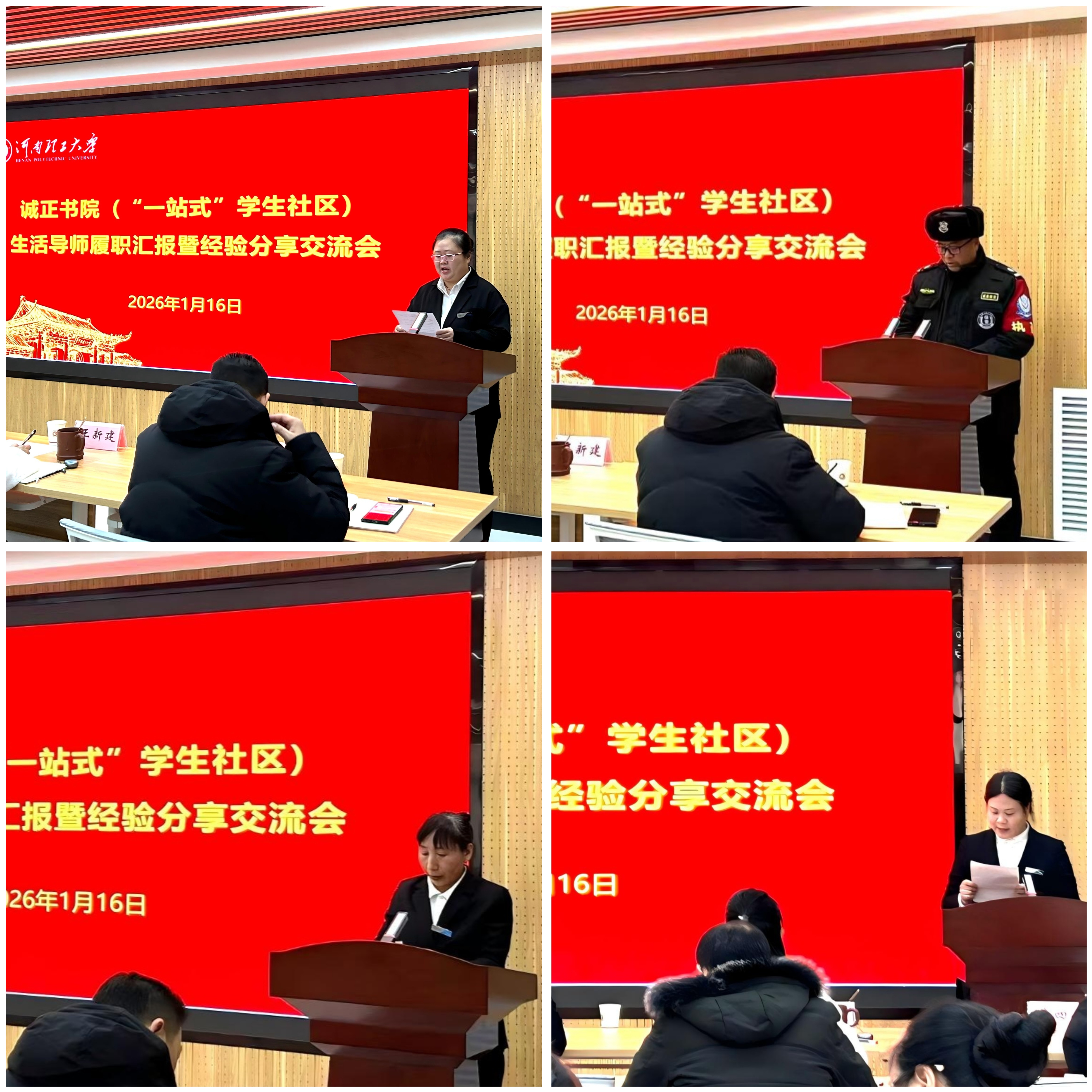为扎实推进“一站式”学生社区综合管理模式建设,深化“管理、服务、育人”三位一体融合机制,1月16日,诚正书院生活导师履职汇报暨工作交流会议在社区210室召开。后勤保障部、保卫处相关科室负责人、“一站式”学生社区机关全体人员以及生活导师代表参会。