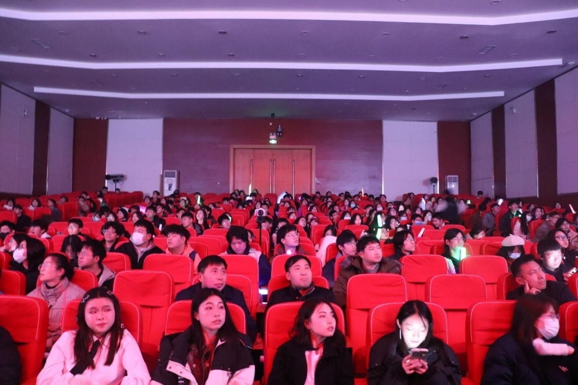 中场活动期间,主持人与台下师生进行有关元旦佳节的诗词小互动,活跃现场氛围,增添节日氛围。随后,法语美声演唱《清涟》、吉他弹唱《爱人错过》和舞蹈《Tomboy》展现了青年特有的活力与激情。话剧表演《反诈银行》则以幽默风趣的方式讲述着现实中的事情,以喜剧的口吻告诫人们要提高防范意识,保护人身安全和财产安全。最后,歌曲《律动青春》以激昂节拍和热情活力带动台下同学也踊跃跟唱,歌声萦满整个礼堂。