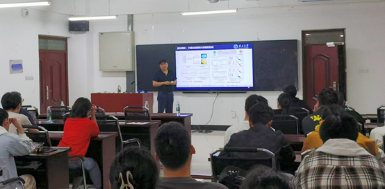 在座师生对报告内容表现出浓厚的兴趣,多位师生与曾教授在非铅钙钛矿材料的研究方法及应用前景方面展开了深入的探讨,现场学术交流互动频繁,学术氛围浓厚。