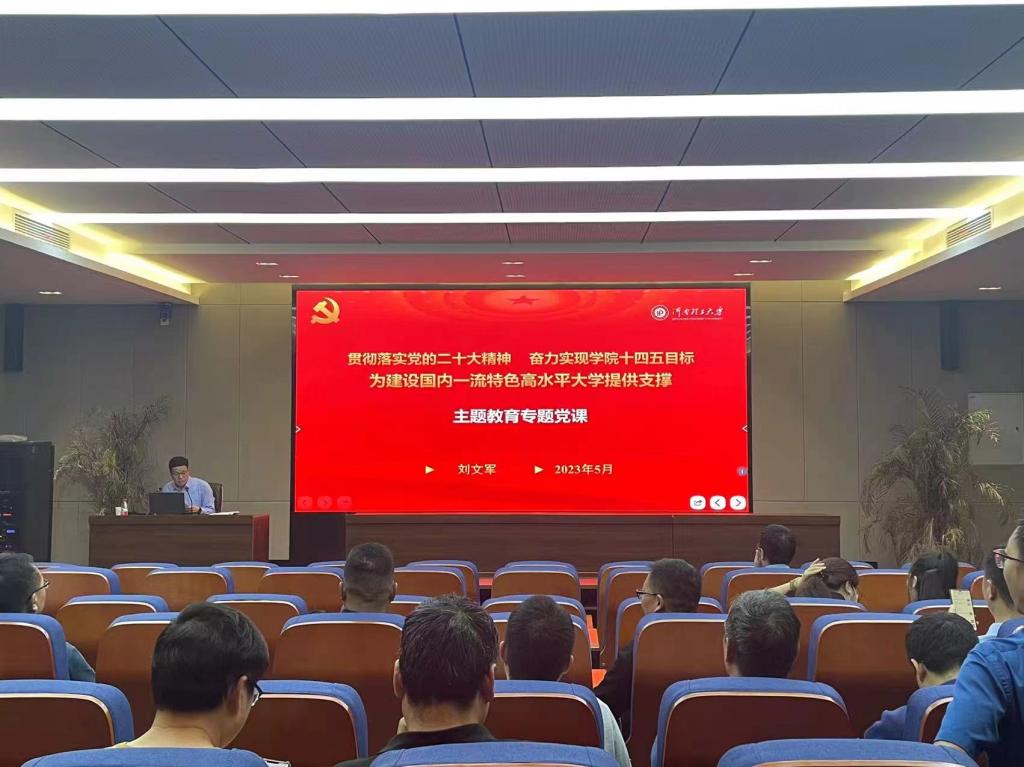本次主题教育动员推进会的召开,进一步明确了学院主题教育的目标要求和工作安排,对于全体师生更好学习贯彻习近平新时代中国特色社会主义思想,推动学院事业高质量发展具有重要指导作用。会后,刘文军以《贯彻落实党的二十大精神,奋力实现学院“十四五”目标,为建设国内一流特色高水平大学提供支撑》为题为全体教职工上了主题教育专题党课。根据学院安排,各基层党支部还学习了《习近平新时代中国特色社会主义思想的世界观和方法论专题摘编》和《习近平新时代中国特色社会主义思想专题摘编》。