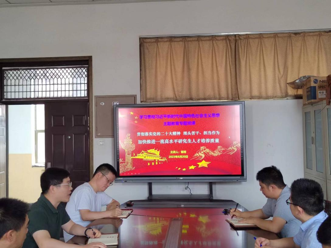 为持续推进学习贯彻习近平新时代中国特色社会主义思想主题教育走深走实,6月20日下午,学院党委委员、副院长杨明教授以“贯彻落实党的二十大精神 埋头苦干、担当作为 加快推进一流高水平研究生人才培养质量”为题,为地下安全防护研究所党支部全体党员主讲主题教育专题党课。