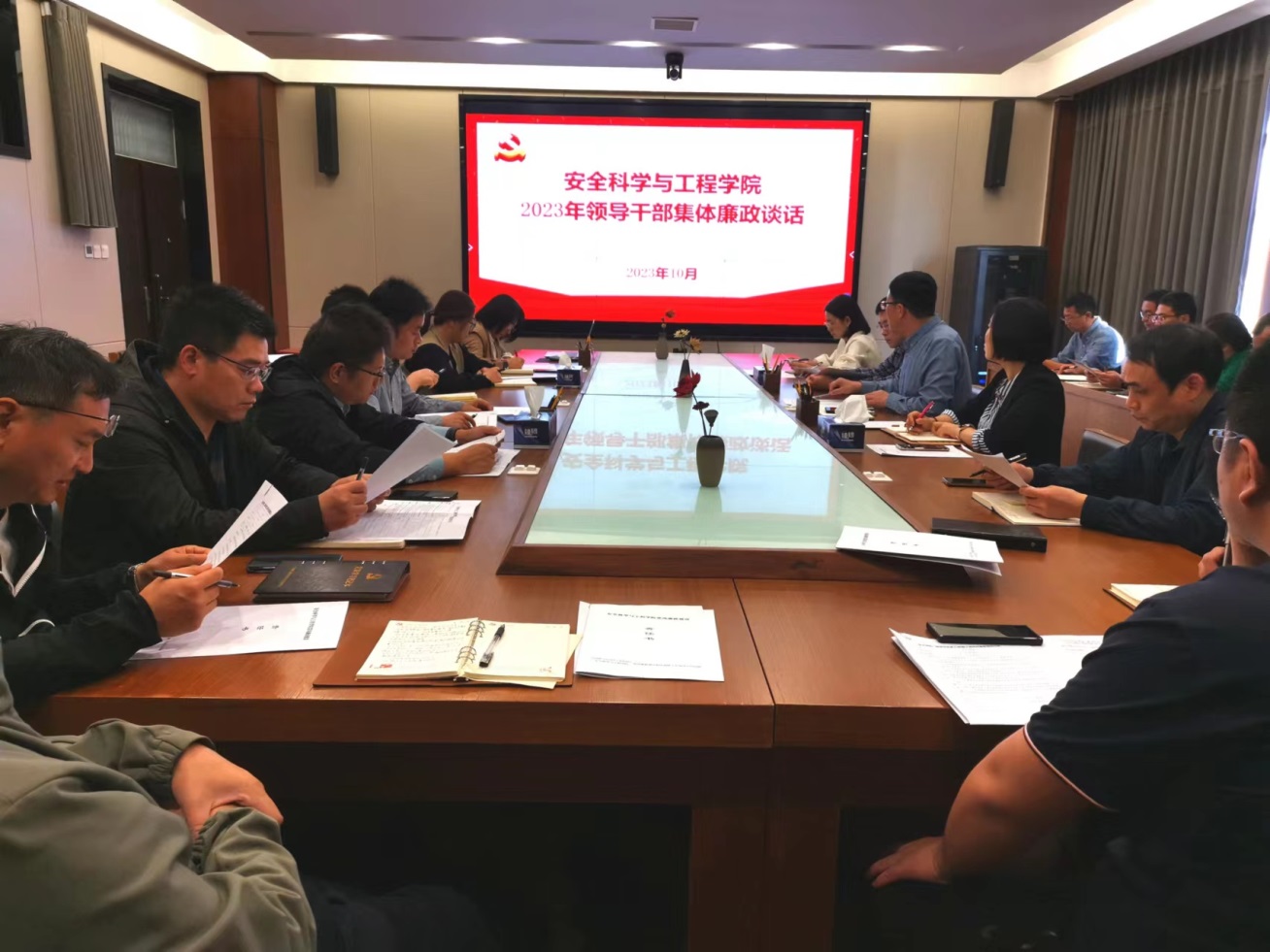 为深入贯彻落实二十届中央纪委二次全会、十一届河南省纪委三次全会精神,切实加强党风廉政建设,10月31日下午,学院在304会议室召开2023年党风廉政建设责任书签署仪式暨领导干部集体廉政谈话会。学院全体院领导及科级干部参加了此次会议。