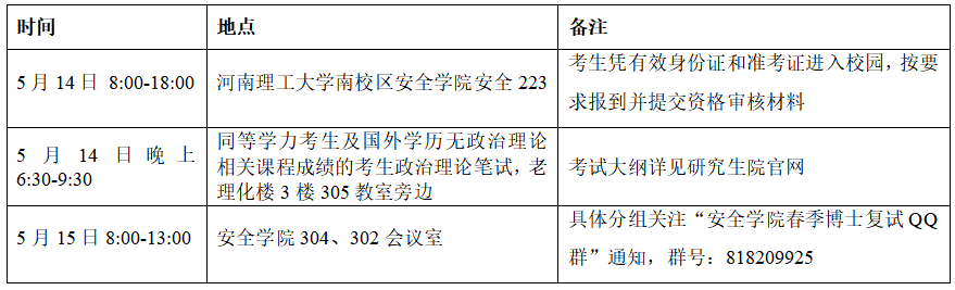 复试时间地点如下,请入围复试考生尽快实名加学院春季博士复试QQ群:818209925,(进群实名制),复试相关事宜将通过QQ群传达。