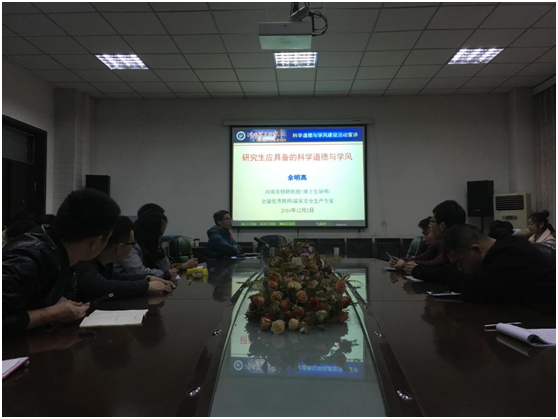 为树立研究生良好的科学道德观念,加强研究生学风建设,2016年12月2日下午,学院在安全楼304会议室举行“研究生科学道德与学风建设宣讲活动”。宣讲活动由河南省特聘教授、安全学院博士生导师余明高教授主讲,安全学院2016级全体研究生参加此次宣讲活动。