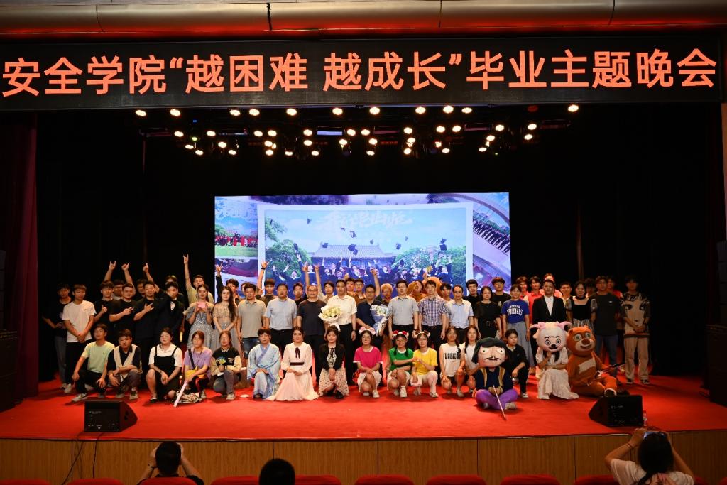 时光荏苒,岁月如歌,又是一年毕业季。为欢送2023届毕业生追逐梦想、奔赴前程,鼓舞广大学生克服困难、立志成才,6月18日晚上,安全学院“越困难 越成长”毕业主题晚会于南校区小礼堂隆重举行。部分职能部门领导应邀出席,安全学院领导班子成员、部分教师代表、全体毕业生和其他年级学生一同观看。