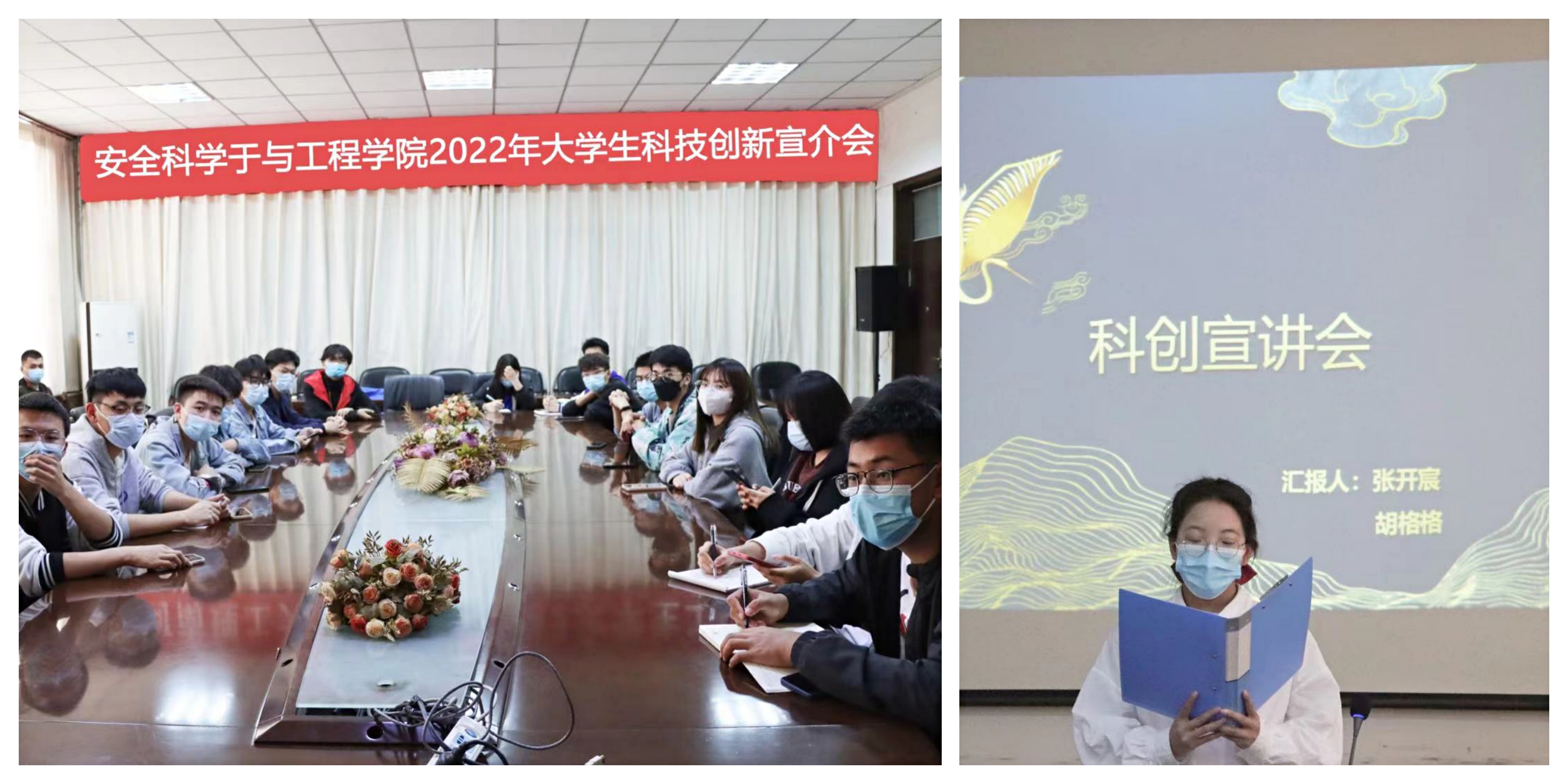 本次宣介会以“科技改变生活,创新无限可能”为主题,由安全学院学生会联合学院优秀科创团队、青年志愿者协会共同举办。会上,优秀科创代表张开宸首先向与会学生介绍了“安全科学与工程大学生实践与创新作品大赛”、“全国大学生节能减排社会实践与科技竞赛”、“全国三维数字化创新设计大赛”、“全国大学生交通运输科技大赛”等七类竞赛,就参赛作品类型、参赛要求、赛程安排做了详细讲解。随后,针对“互联网+”大学生创新创业大赛,胡格格结合自身参赛经验,围绕撰写流程、主要内容等方面展开介绍,多角度、全方位地讲解了如何制作一份合格且完善的商业计划书。随后,2018级保研学生代表王梦文回顾大学学习生活,分享了近四年以来参加科创比赛的感受和心得,耐心而细致地阐述了科创比赛对大学生考研、保研的重要性,她鼓励与会学生深入了解各类科创竞赛并积极参与其中,培养自身创新能力和综合素质。交流互动环节,在场学生积极提问,踊跃发言,各位科创代表对学生疑问做了一一解答,现场氛围融洽。