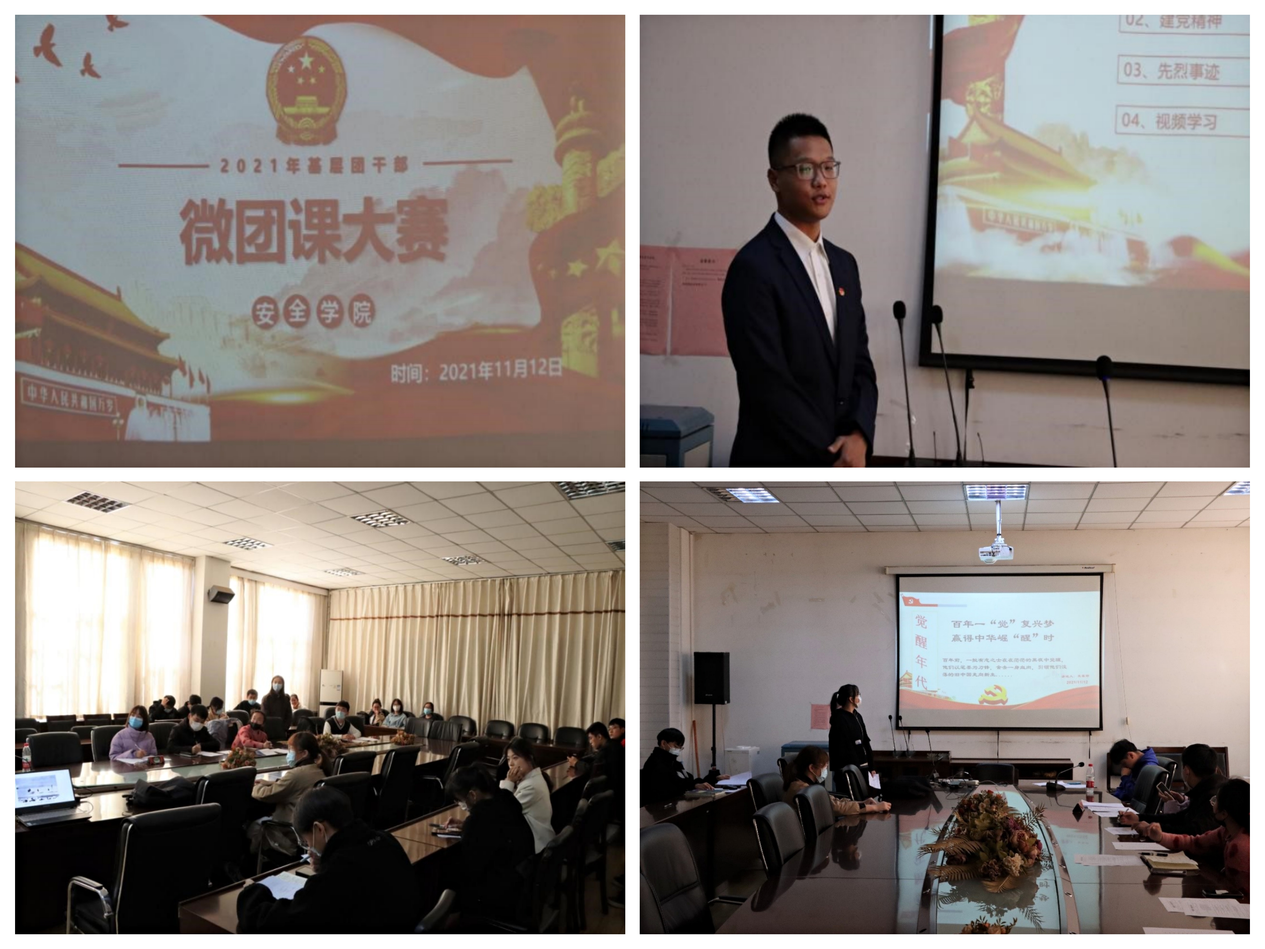 为深入学习习近平新时代中国特色社会主义思想和党的十九大精神,全面贯彻落实团的十八大工作部署,11月12日下午,安全学院团委于学院楼304会议室举办了2021年基层团干部“微团课大赛”。安全学院团委书记朱丹、兼职辅导员祁明锐、王大钊、张鸽,19级优秀学生代表苗诗谱担任大赛评委,来自2020级、2021级的20位选手参加比赛。