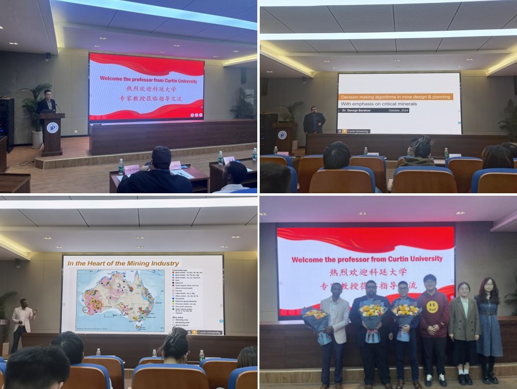 首先,在安全学院101报告厅举办了学术讲座,我院百余名师生参与了讲座。Barakos博士作了题为《Decision making algorithms in mine design and planning with emphasis on critical minerals》的学术报告,针对需要同时评估多个参数和选项时,展开了关于风险分析、根本原因分析和顶层决策的讨论;同时围绕如何将多标准决策分析技术数字化,并将其应用于做出快速有效的高层决策进行了系统阐述。Tadesse副教授和常平博士作了题为《海外研究生培养机制和模式》的研究生培养报告,向我院师生详细介绍了科廷大学在研究生培养方面的相关情况,并为有意愿前往科廷大学访学交流的师生提供了宝贵信息和鼓励支持。报告结束后,三位专家与在场师生进行了互动交流,现场氛围热烈。