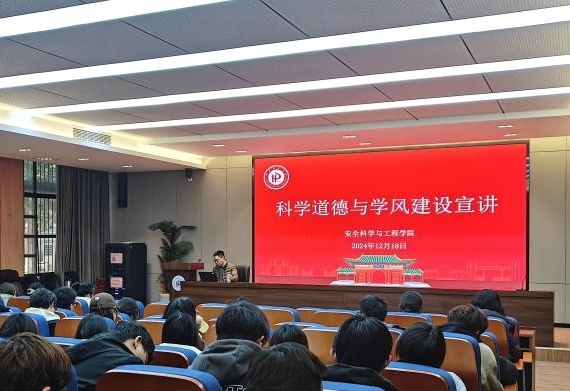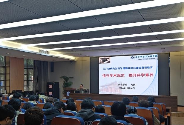 为引导学院研究生坚守学术规范,崇尚科学道德,安全学院于12月18日下午在学院101会议室召开2024-2025学年研究生科学道德与学风建设宣讲活动,邀请学院副院长刘勇作“恪守学术规范,提升科学素养”主题宣讲,2024级全体研究生参加本次活动。