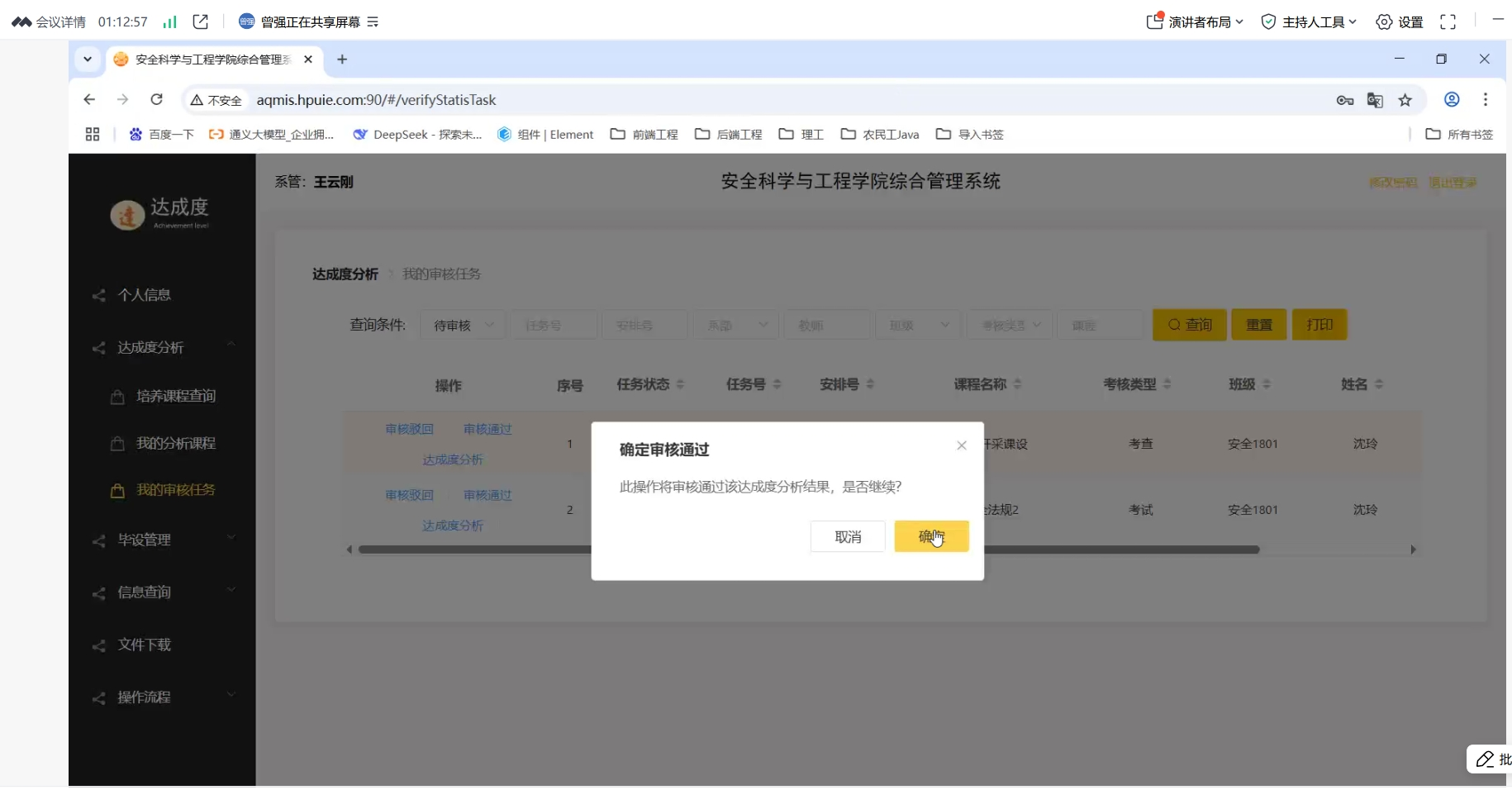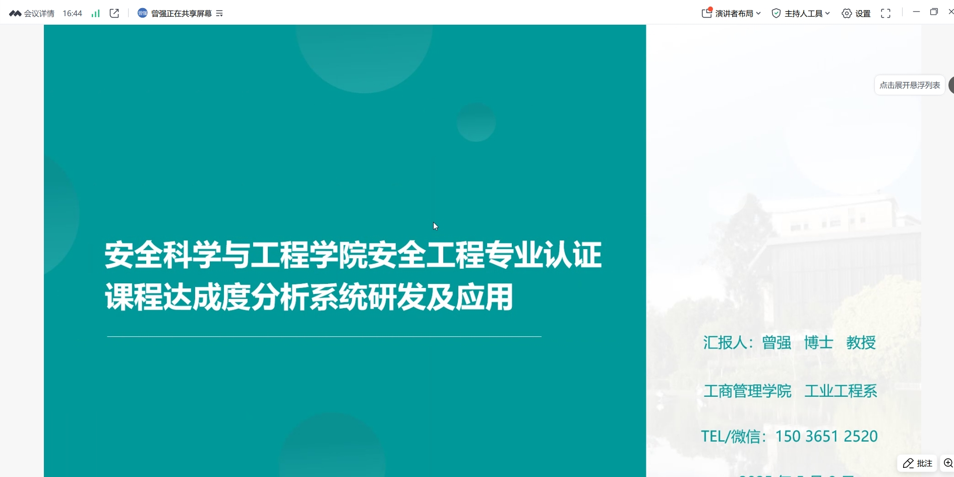 会上,曾强教授详细介绍了安全工程专业认证课程达成度分析系统的研发成果,强调了该系统采用智能化算法和标准化流程,自2019年应用以来已持续优化五年,显著提升了课程达成度计算的准确性和效率,有效解决了传统人工操作中的常见问题。李波在总结时指出,课程达成度分析是工程教育认证的重要环节,如何科学、高效地开展工作一直是各高校关注的焦点,希望通过本次交流会共同分享专业认证实践中的创新成果,为兄弟院校提供有益参考,促进安全工程教育高质量发展。