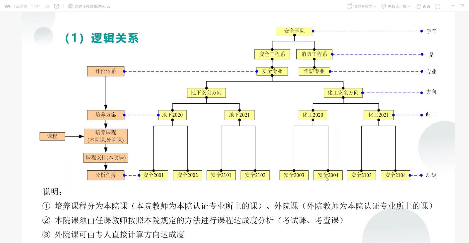 5月8日,河南省安全工程专业虚拟教研室示范课程建设分享交流会顺利召开。本次交流会以“安全科学与工程学院安全工程专业认证课程达成度分析系统研发及应用”为主题,由河南理工大学安全科学与工程学院副院长李波主持,特邀学校工商管理学院工业工程系曾强教授作专题报告,省内多所高校的安全工程专业教师及行业专家在线参与,共同探讨课程认证与教学质量提升的新路径。