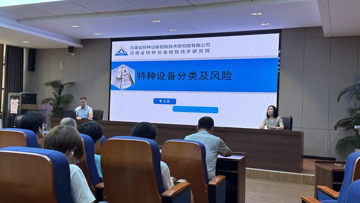 为加强校企合作育人,提升学生对安全行业发展现状的认知,6月17日下午,安全学院邀请河南省特种设备安全检测研究院焦作分院院长秦定林、业务中心主任李云安等,在院101会议室举办“特种设备分类及风险”为主题的育人讲座。学院100余名本科生参加讲座,讲座由安全学院党委副书记李静主持。