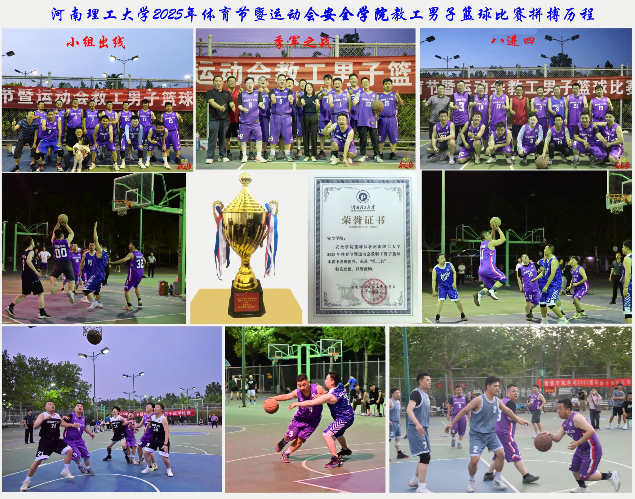 在2025年体育节暨运动会教工男子篮球比赛中,安全学院教工篮球队经过奋勇拼搏最终荣获季军,实现了历史性突破,创造了学院教职工篮球团体赛事最佳战绩。