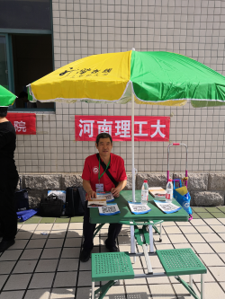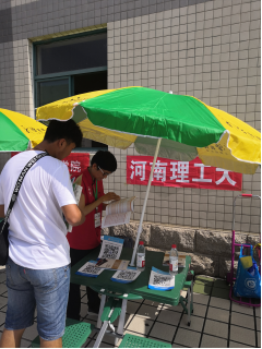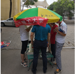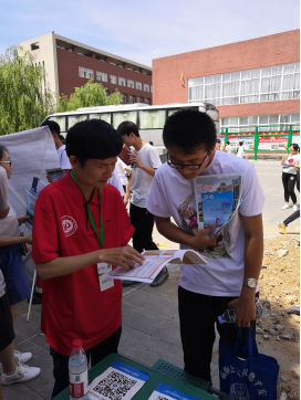 27日在桓台二中进行招生宣传,尽管烈日骄阳,我们依然坚守岗位,回答考生问题。
