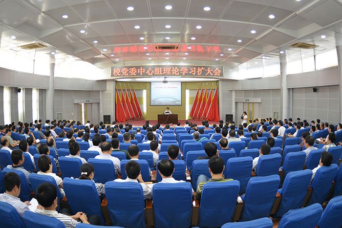 9月13日上午,校党委中心组在力行楼学术报告厅召开新学期第一次理论学习(扩大)会,校党委书记王少安作题为《高等学校院(系)领导体制解读》的专题报告。校党委中心组成员、全体处级干部和学院办公室主任参加学习会。