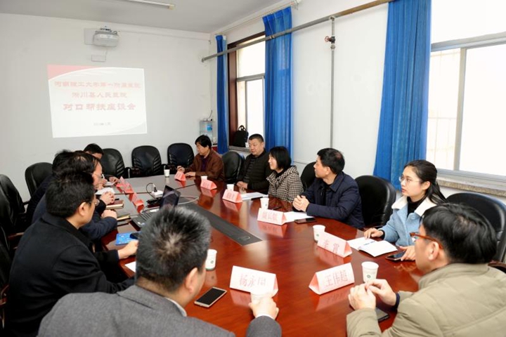 为贯彻落实《河南理工大学第一附属医院对口支援淅川医疗卫生项目协议》,深入推进校地结对帮扶医疗卫生专项工作,日前,我校第一附属医院与淅川县人民医院对口帮扶座谈会在一附院会议室召开,淅川县人民医院副院长姬长敏,一附院党委书记兼院长杨永国、副院长刘喜成,医学院党委副书记时洋等参加座谈会,会议由我校选派淅川挂职干部王伟超主持。