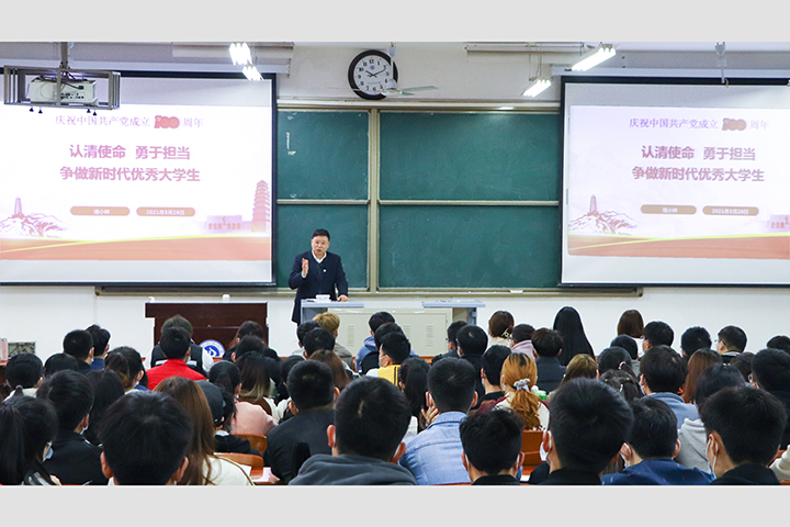 3月26日上午,根据学校党史学习教育工作安排,校长杨小林在三号教学楼3106教室为青年学生上题为《认清使命 勇于担当 争做新时代优秀大学生》的思政课。应急学院管理科学专业和电气学院测控技术与仪器专业2018级150余名本科生聆听了思政课。