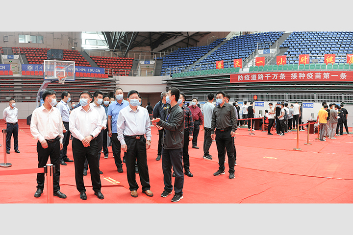 ?根据焦作市统一安排部署和学校《新冠病毒疫苗接种工作方案》安排,5月7日上午,全校师生新冠疫苗接种第一针开始全面铺开。校党委书记邹友峰、校长杨小林十分关心疫苗接种工作开展情况,到南校区体育馆接种现场进行实地检查指导,副校长翟耀南陪同。