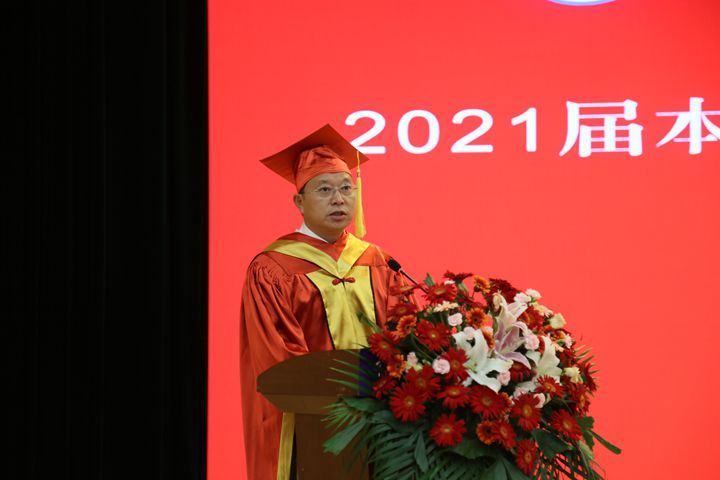 ??沈记全、蔡太生分别宣读了河南理工大学关于授予2021届本科生毕业生学士学位和颁发毕业证书的决定。主席台就座领导为毕业生代表颁发了毕业证书和学位证书。教师代表康智慧,毕业生代表王晨雨同学作了精彩发言。