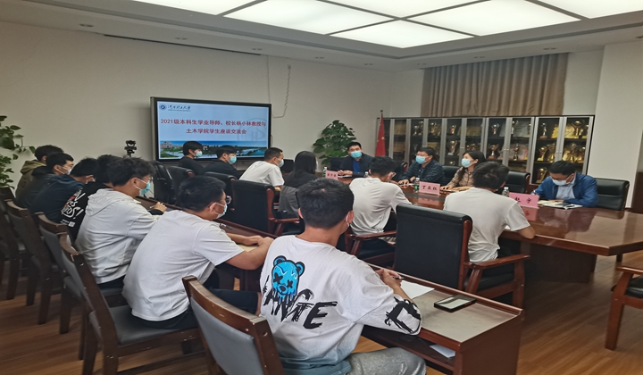 ??5月7日下午,2021级学业导师、校长杨小林教授在土木学院二楼会议室与指导的土木类2021级学生代表座谈交流,教务处、土木学院相关负责人参加。座谈会由土木学院院长丁亚红主持。