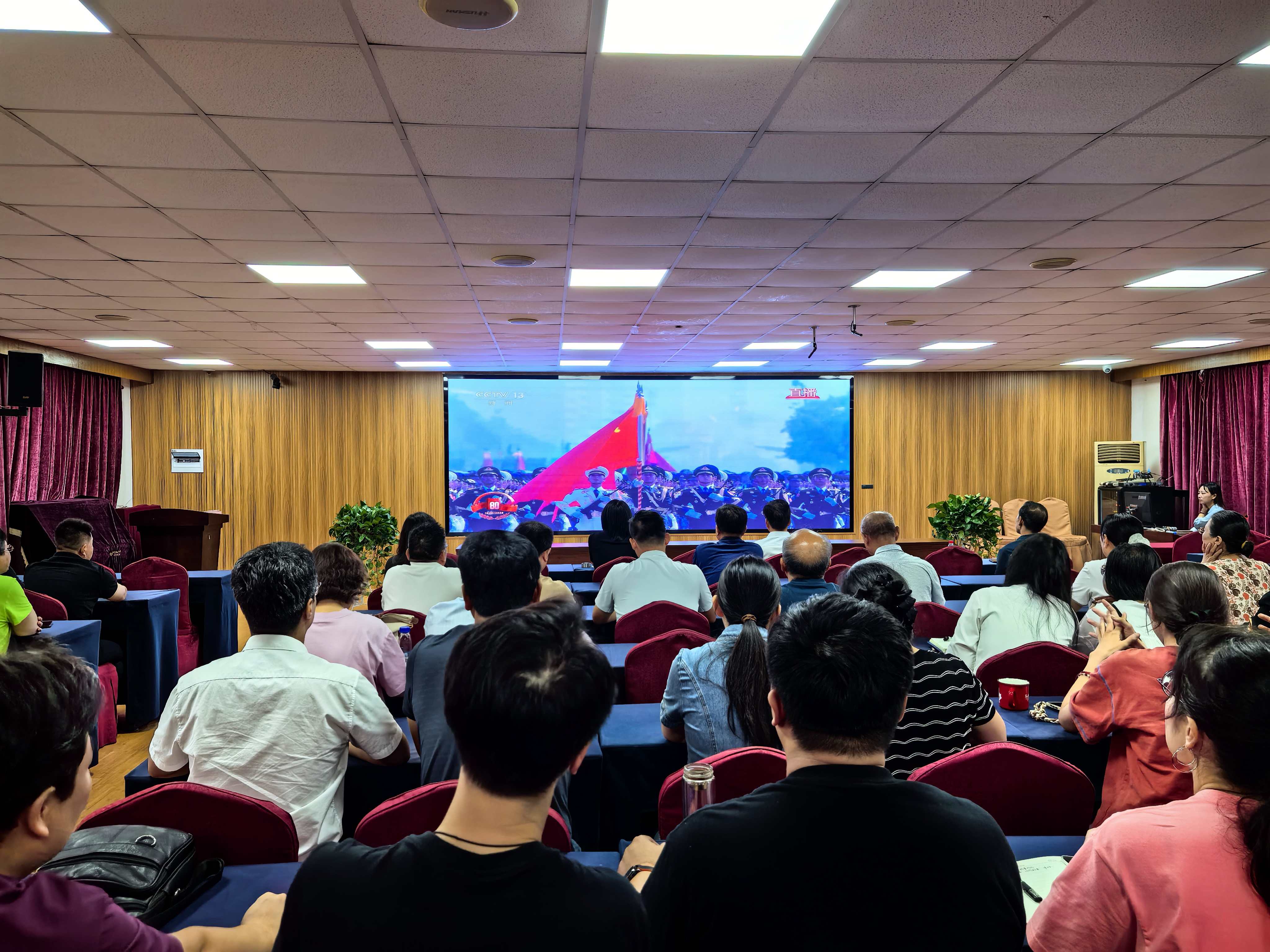 根据学校党委统一部署,2025年9月3日上午,郑州校区管委会组织全体教职工在三楼多媒体教室集中收看了纪念中国人民抗日战争暨世界反法西斯战争胜利80周年大会实况直播。参会人员全程认真聆听习近平总书记发表的重要讲话,观看盛大阅兵仪式。受阅官兵步伐铿锵、整齐划一,新型主战装备体系精良、技术先进,各型战机组成的空中编队呼啸而过、气势如虹,立体化、多维度彰显了我国日益强大的军事实力与综合国力,令现场全体同志倍感震撼与自豪。