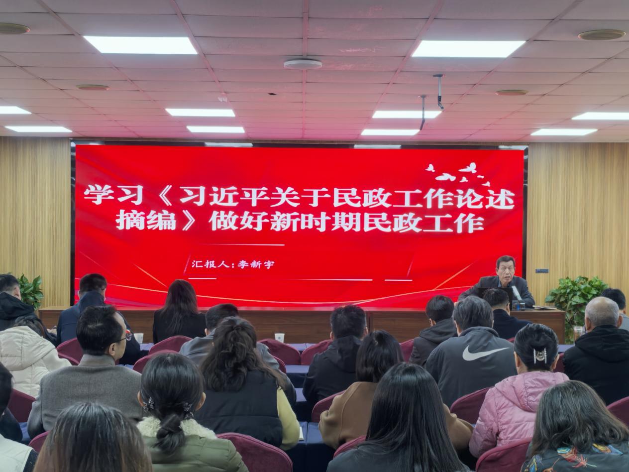 李新宇首先以“学习《习近平关于民政工作论述摘编》,做好新时期民政工作”为题,系统梳理并阐释了习近平总书记对民政工作的重要指示精神,强调民政工作关系民生、连着民心,在新时期必须坚持以人民为中心,切实履行基本民生保障、基层社会治理、基本社会服务等职责。随后,余本胜以“深学笃行四中全会精神,接续推进中国式现代化”为题,围绕党的二十届四中全会精神展开专题辅导,详细解读全会的重大意义、精神实质与实践要求,引导大家深刻把握中国式现代化的内涵特征与实现路径。