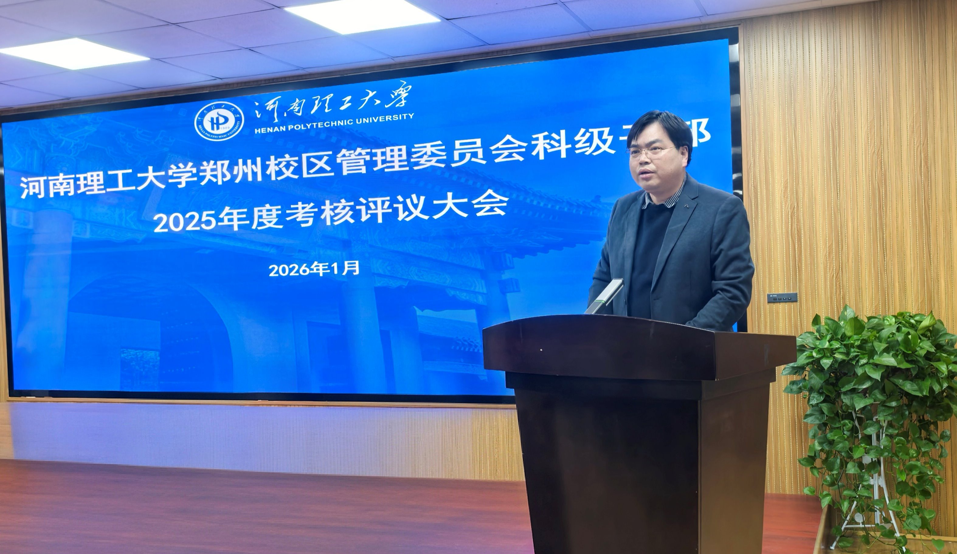 为全面总结年度工作、加强干部队伍建设、凝聚发展共识,2026年1月14日下午,郑州校区管委会召开2025年度科级干部考核评议大会。管委会全体教职工参加会议,会议由管委会副主任李新宇主持。