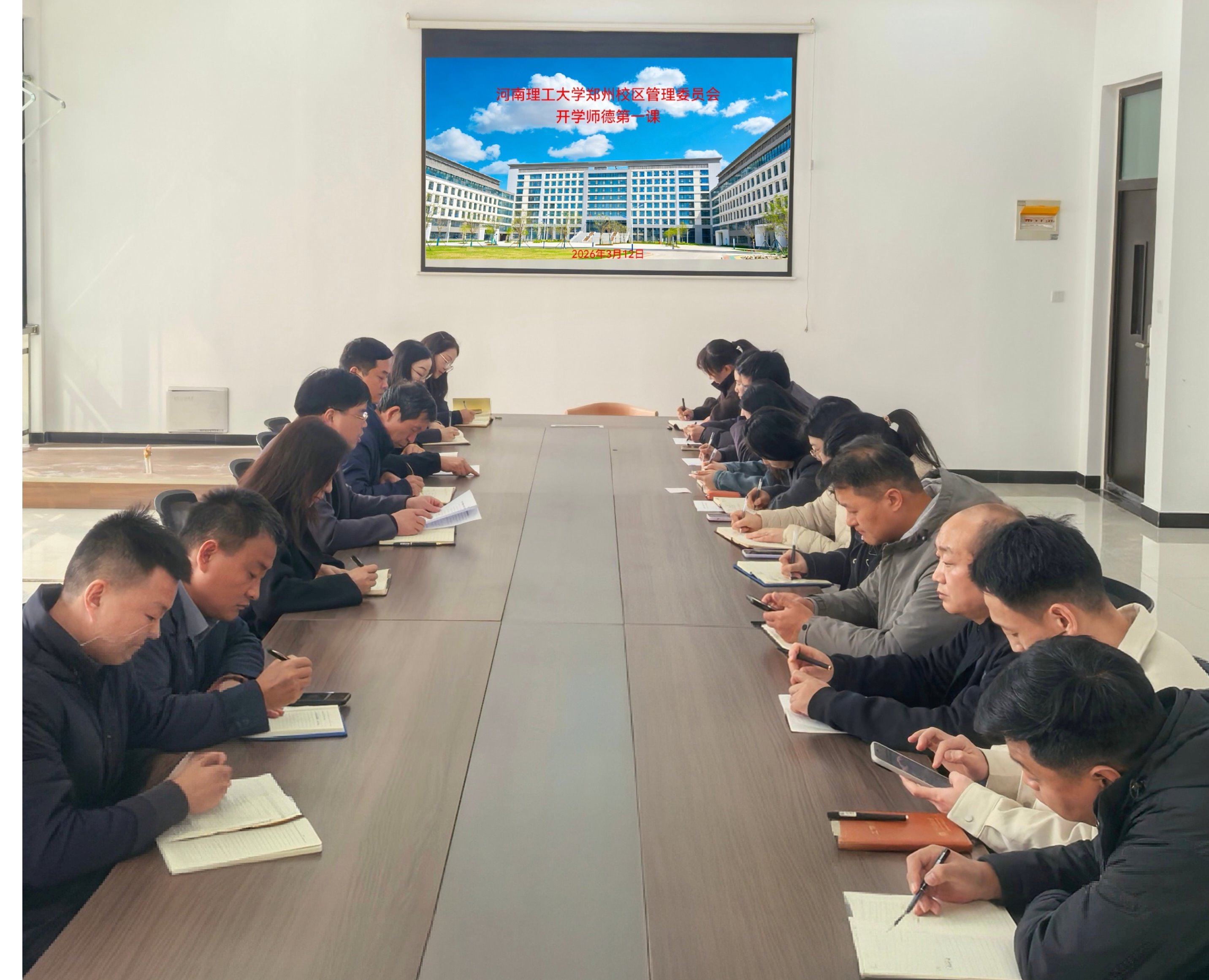 为深入践行教育家精神,进一步加强师德师风建设,3月12日下午,郑州校区管委会在二楼会议室召开“开学师德第一课”暨师德失范警示教育会。管委会领导班子成员、全体教职工参加会议,会议由管委会副主任余本胜主持。