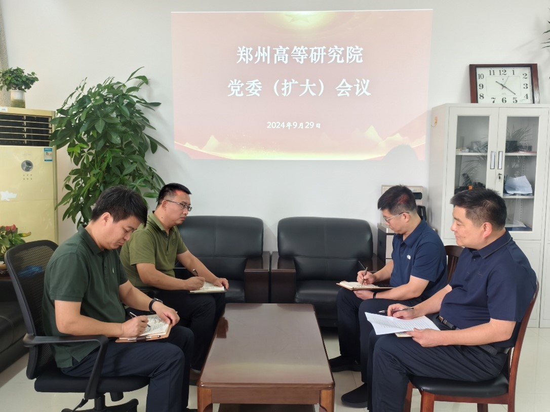 9月29日上午,郑州高等研究院在明德楼402办公室召开党委(扩大)会议,传达学习习近平总书记对党纪学习教育作出的重要指示精神和学校党委(扩大)会议精神,总结党纪学习教育工作,研究部署推进党纪学习教育常态化长效化工作。郑州高等研究院领导班子成员、科级干部和党支部书记等参加会议。会议由党委副书记、执行院长张合兵主持。